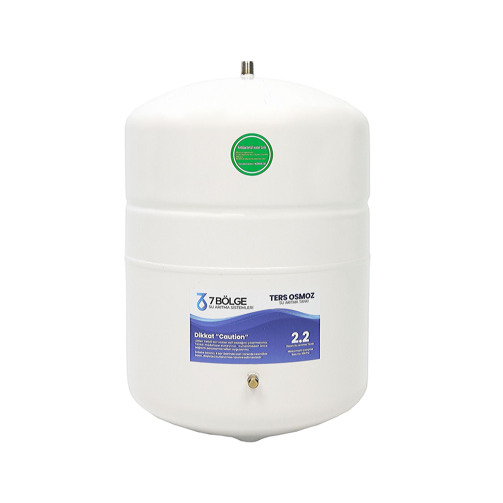 2.2 galon su arıtma tankı, ev tipi ters osmoz (RO) sistemleri için geliştirilmiş kompakt ve yüksek performanslı bir su depolama çözümüdür. 8 litrelik toplam hacmi sayesinde aile kullanımı için günlük içme suyu ihtiyacını rahatlıkla karşılar. İç kısmında bulunan gıda sınıfı diyafram membran, suyun metal yüzeyle temasını engelleyerek hijyenik depolama sağlar. Dayanıklı çelik gövdesi, yüksek basınca karşı uzun ömürlü kullanım sunarken, standart 1/4 bağlantı yapısı sayesinde piyasadaki birçok su arıtma cihazı ile tam uyumludur. NSF onaylı yapısı sayesinde suyun tadını bozmaz, koku oluşturmaz ve güvenli depolama sağlar. Özellikle tezgah altı cihazlarda yer tasarrufu sağlayan ideal tank ölçüsüdür.